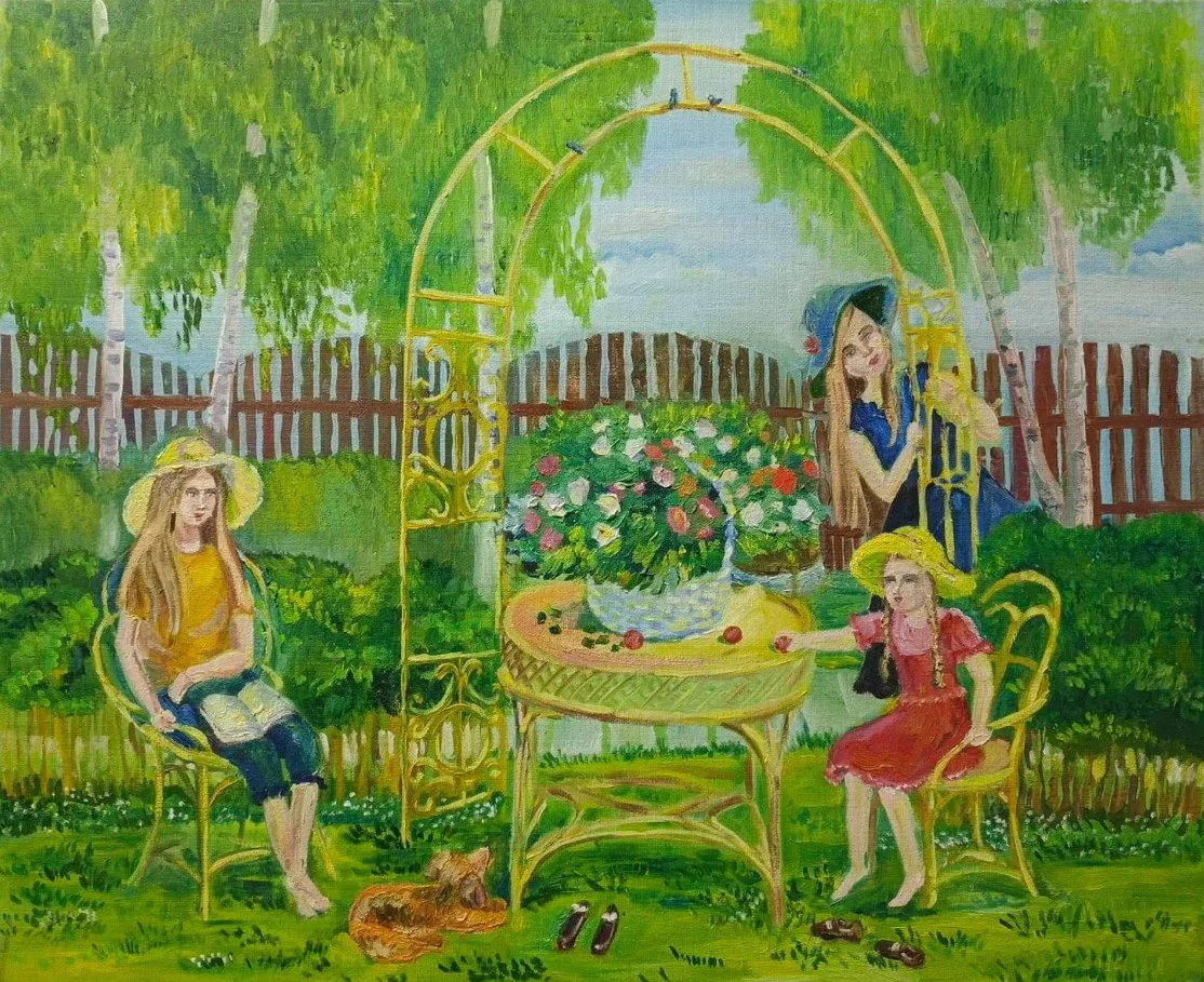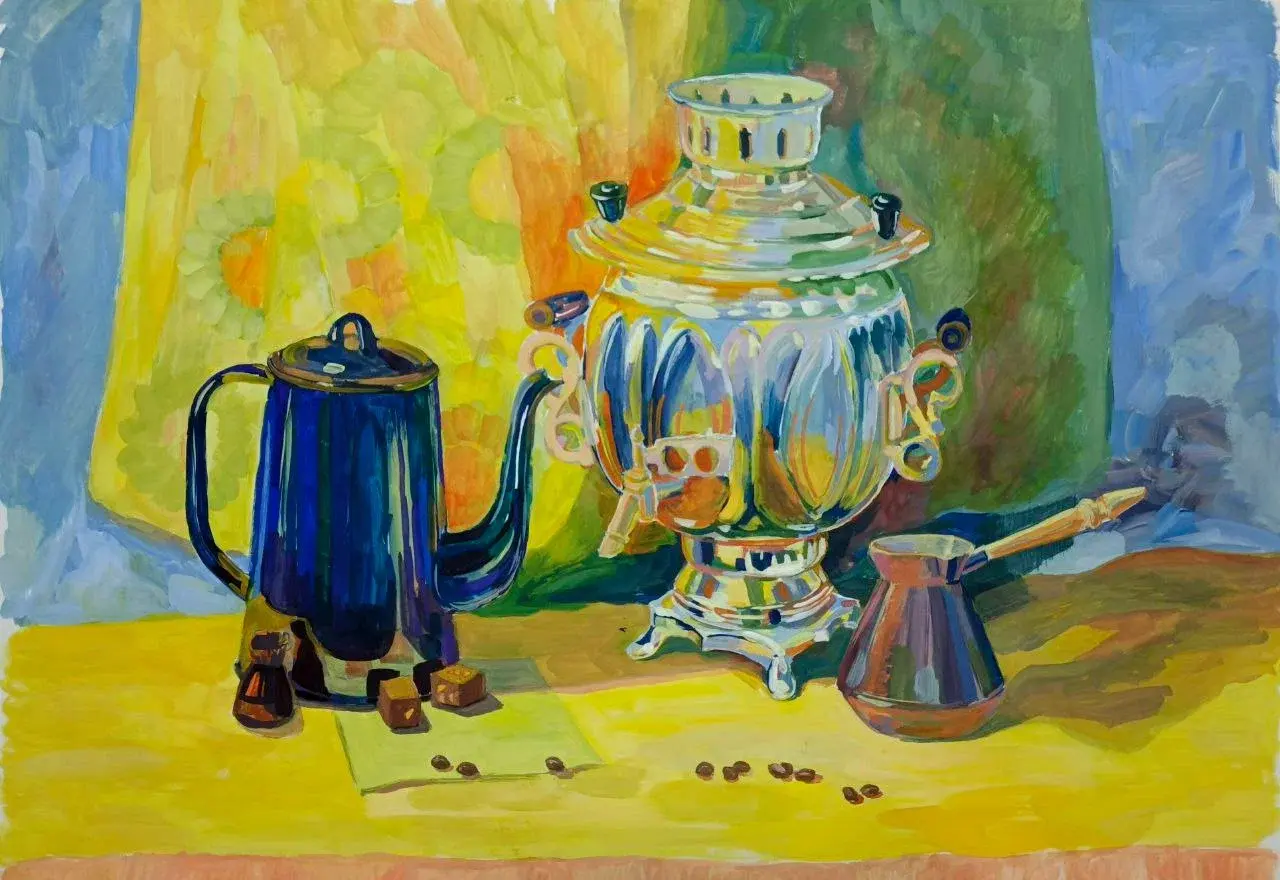 В каталог вошло более трехсот уникальных работ, выполненных в различных техниках живописи и графики. Авторами произведений стали 114 педагогов- художников из различных уголков Иркутской области. В их числе - Надежда Владимировна, которая представила три работы: "Девочки в саду", "Бельчонок", "Натюрморт с кофейником, туркой и самоваром".